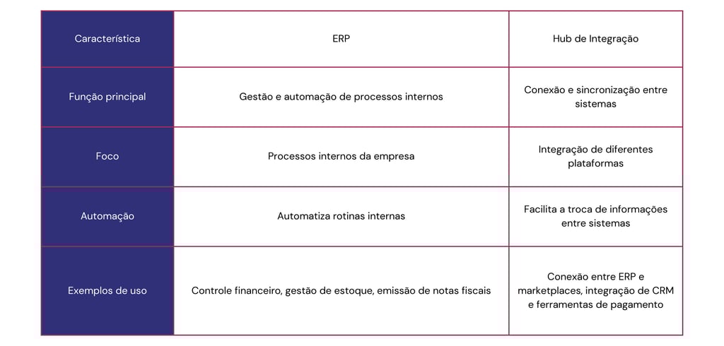 Diferenças entre ERP e Hub de Integração